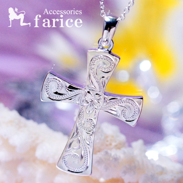 クロス 十字架 プルメリア 花 スクロール 波 ハワイアンジュエリー シルバー925 ペンダント ネックレス