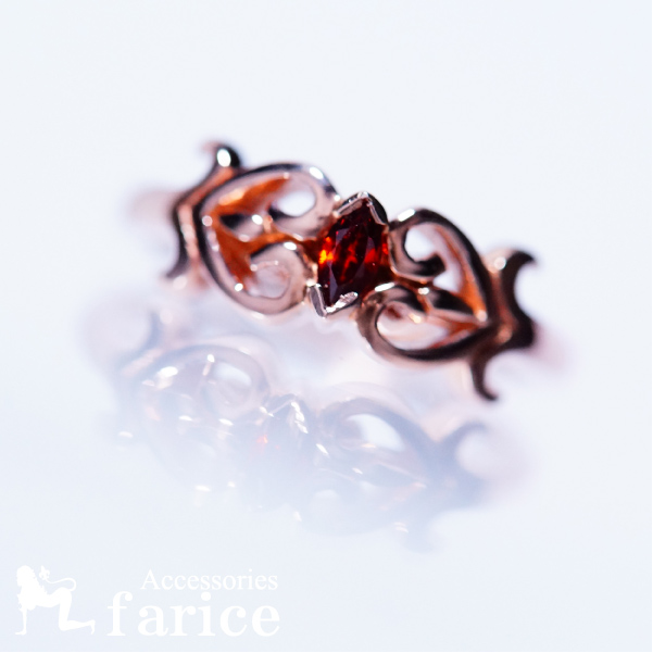 ガーネットスカーレット ピンクゴールド透かしハートリング