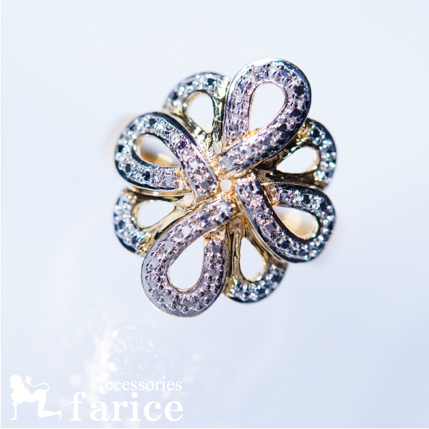◆商品のサイズ◆ 縦約22mm 横約22mm 高さ約24mm 重さ約5.7g ◆素材◆シルバー925◆商品のコメント◆ 優雅な曲線を描いた花をイメージしたデザインはあえてシルバーの部分を残しイエローゴールドとの色彩のコントラストの美しさを生み出しています。白いジルコニアも並べられゴージャス感と華やかさも併せもつデザインになっています。