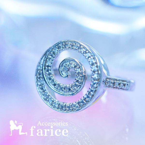 シルバー銀玉ラインストーンスパイラルリング