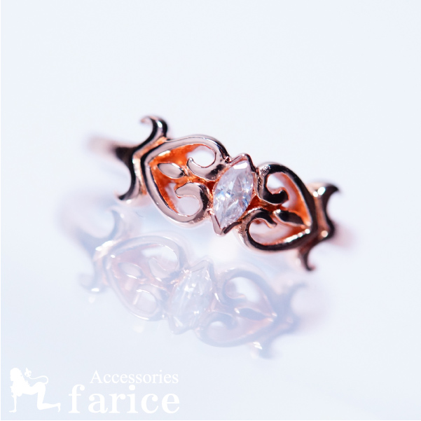 ピュアホワイトキュービックジルコニア ピンクゴールドシンメトリーダブルハートリング