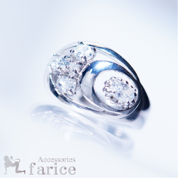 2サークル キュービックジルコニアホワイトフラワージュエリーリング【13号】
