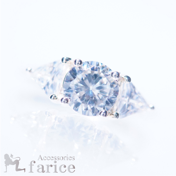 ◆商品のサイズ◆ 縦約7mm 横約20mm 高さ約24mm 重さ約1.7g ◆素材◆シルバー925◆商品のコメント◆ センターとサイドに配置されたホワイトジルコニアは石のカットが異なるため光の反射が変化してとても綺麗に輝きます。どの角度から見てもジルコニアがキラキラとした輝きを放つとっても綺麗なリングです。