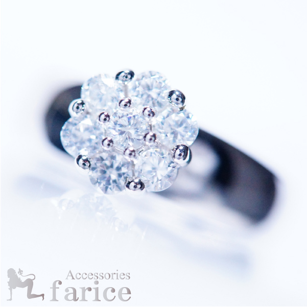 7ホワイトキュービックジルコニアフラワー シャイニージュエリーリング【16号】