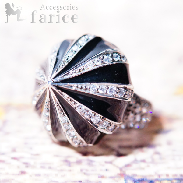キュービックジルコニアパヴェ ブラックマッシュルームジュエリーリング【11号】