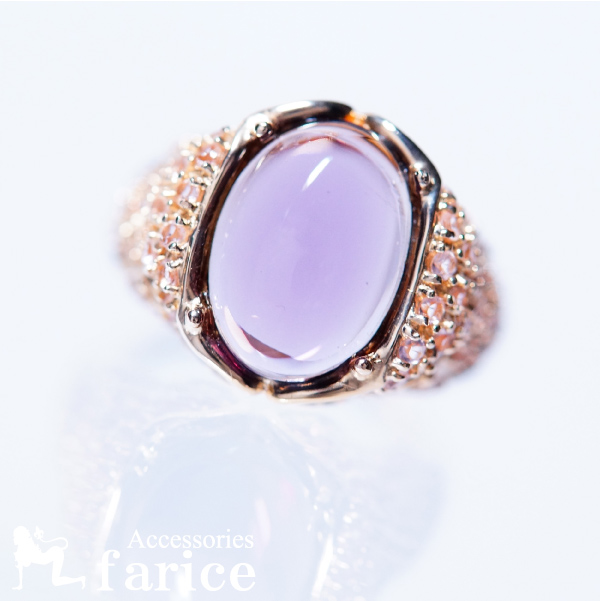 ダークパープルクオーツ&キュービックジルコニアパヴェイエローゴールドジュエリーリング【12号】