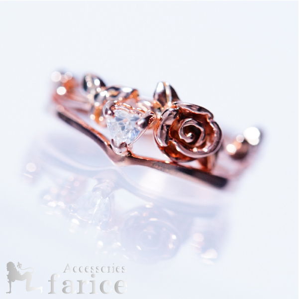 ハートカットキュービックジルコニアストーン&ピンクゴールドローズ セパレート2連ジュエリーリング【8号】