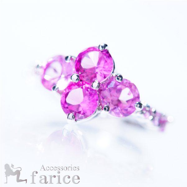 パープルピンクキュービックジルコニアストーンのスイートジュエリーリング【8号】