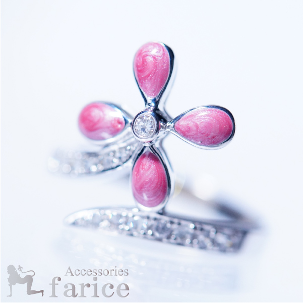 ヨーロピアンミルキーピンクマーブルフラワーのパヴェキュービックジルコニアジュエリーリング【21号】