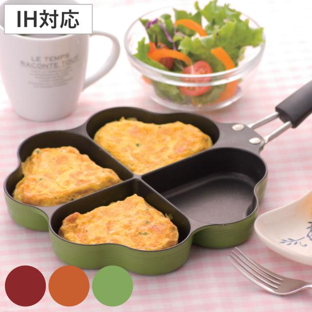 仕切りフライパン IH対応 しあわせを呼ぶ四つ葉のフライパン ( ガス火対応 ハート型フライパン 仕切り付き ふっ素加工 日本製 フッ素コーティング アルミ製 軽量 四葉フライパン ハート型 フライパン ih対応)