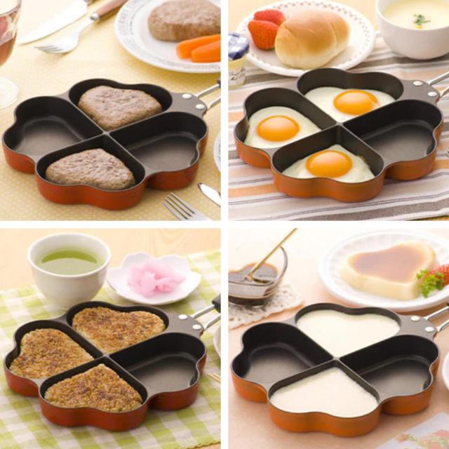 ハート形のハンバーグや目玉焼きを作ったり、プリンやパンケーキなどのデザート作りにもお使いいただけます。ハートが4つ揃えば、四葉のクローバーになるので、様々な演出ができます。