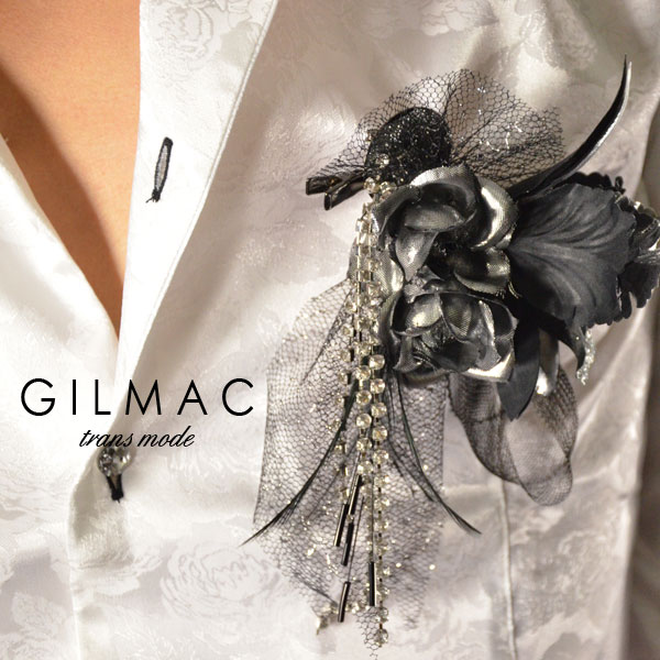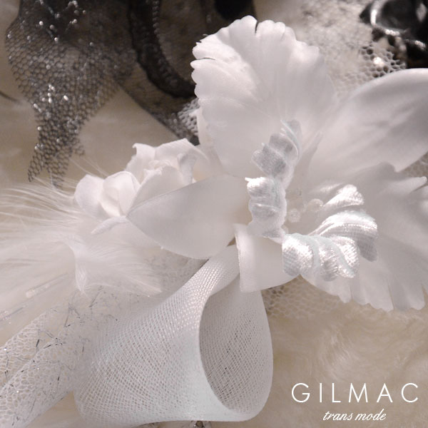 コサージュ カトレア 薔薇 フェザー 白レースリボン ブローチ メンズ コサージュ 日本製 結婚式(ホワイト) k1705/ドレス造花MADEINJAPAN