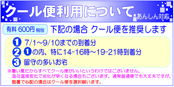 7/1-9/20北海道・青森・秋田・宮崎・鹿児島・離島配送不可。8/5-8/20画像案内不可