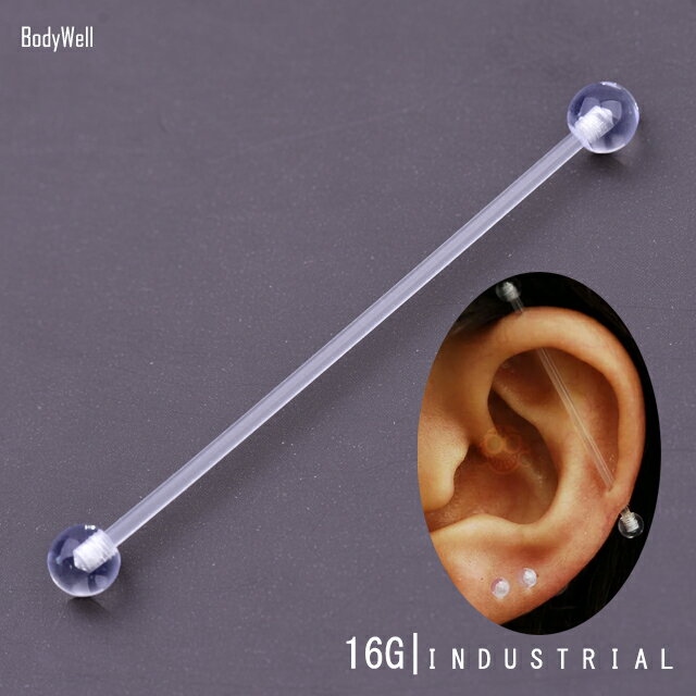 透明ピアス ロングバーベル 16G シークレットピアス インダストリアル ストレートバーベル 軟骨ピアス ボディピアス