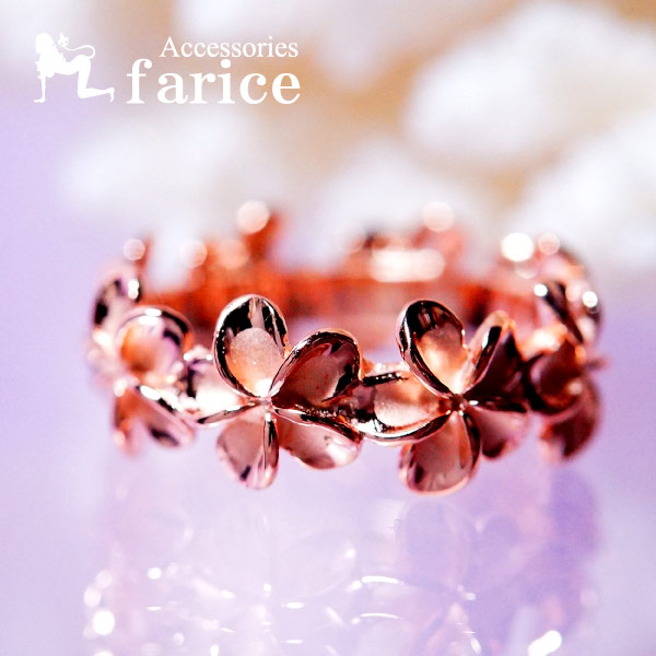 プルメリア フラワーレイ 花びら光沢仕上げ ピンクゴールドカラー ハワイアンジュエリー シルバー925 リング【花/8mm幅】