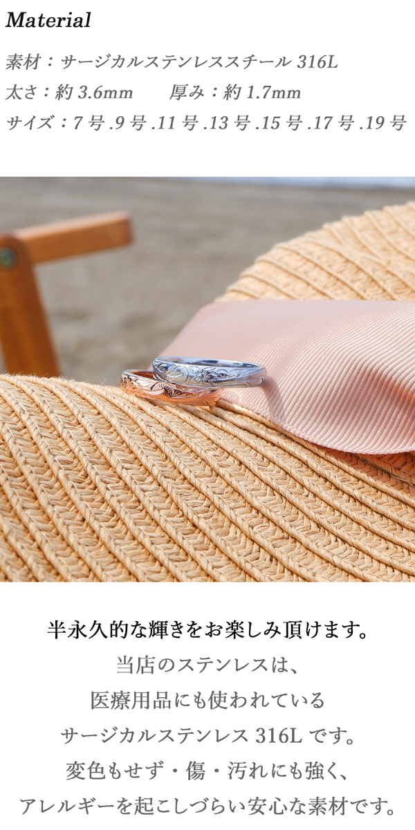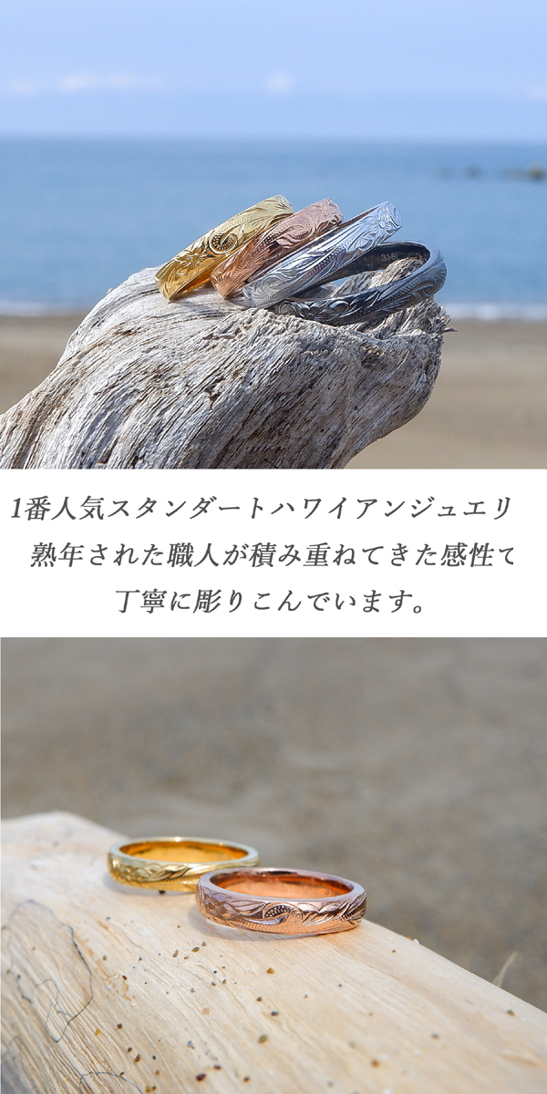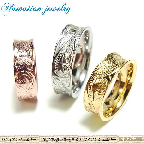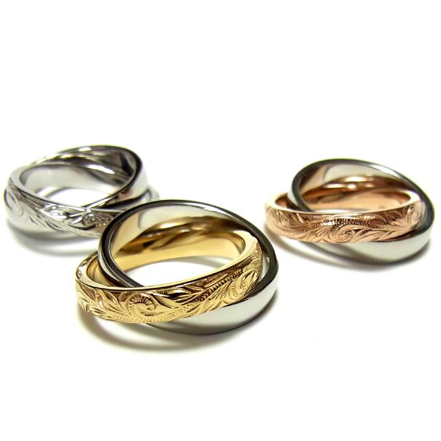 送料無料 刻印可能 ハワイアンジュエリー リング メンズ レディース 指輪 ピンクゴールド イエローゴールド ブラック ステンレス ラッピング対応 アレルギー対応 ペアリング セットにも