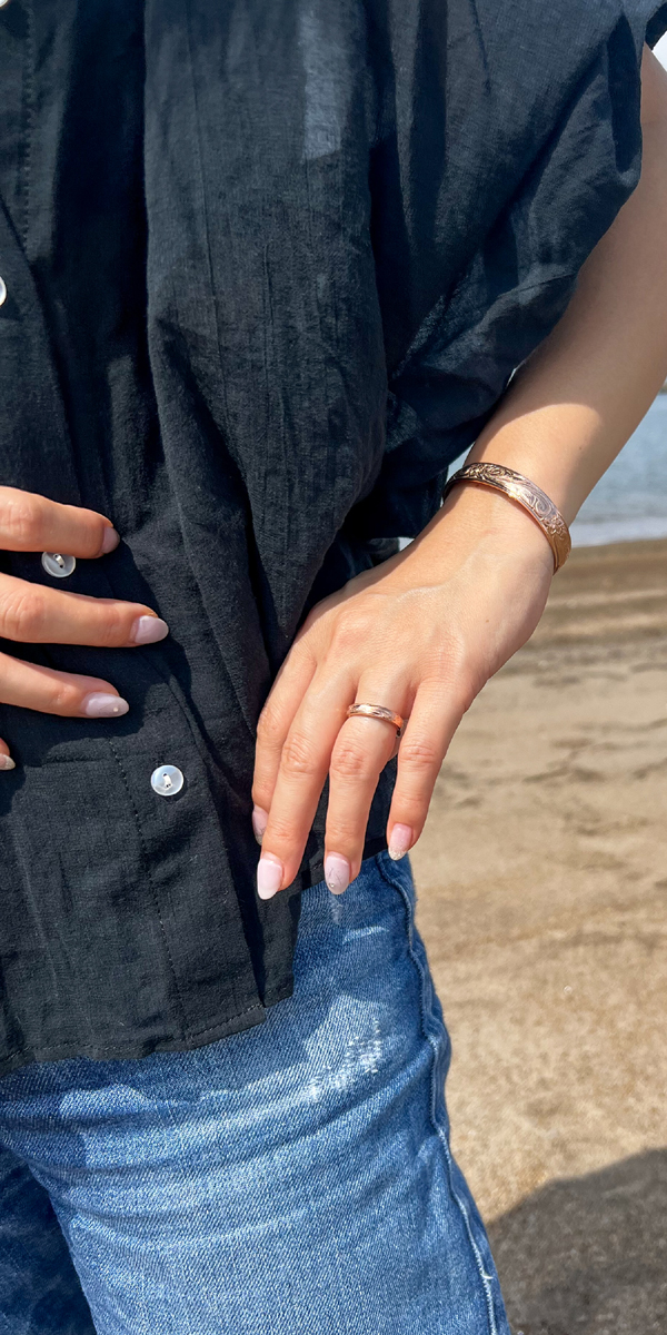 品番:grs8361 ハワイアンジュエリー リング 医療用ステンレス使用でつけっぱなしOK! プルメリア(花)とスクロール(波)のシンプルなハワイアンリングです。 初めてのハワイアンジュエリーにも着けやすくかわいいデザイン。 名入れもできるので、ペアリングやプレゼントにもオススメです。 ペアリングは⇒コチラ プレゼント用の無料BOXラッピイングと有料のローズBOXラッピングをお選びいただけます。 |