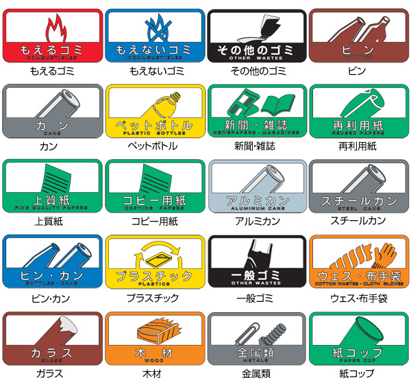 | 種類 | もえるごみ、もえないごみ、プラスチック、一般ごみ |