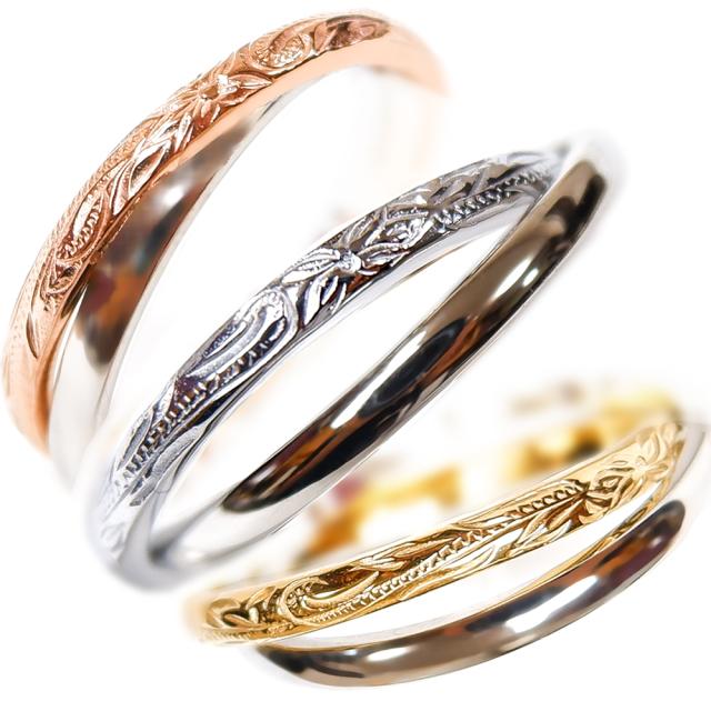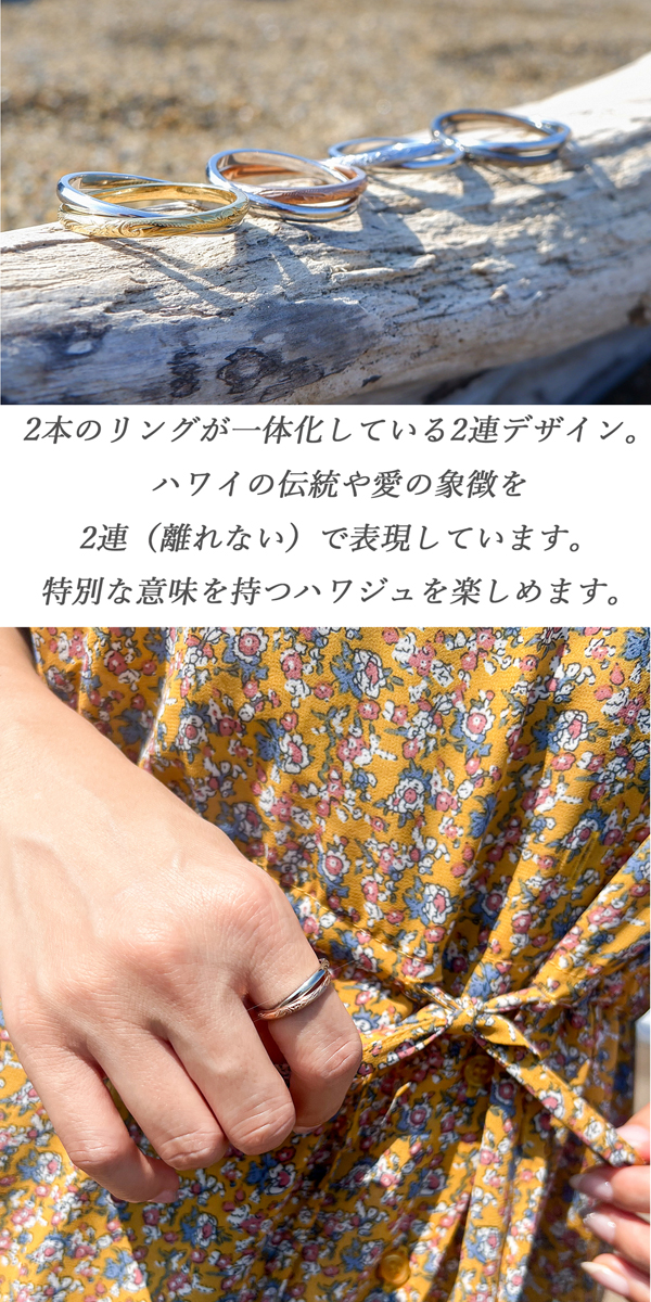 送料無料 刻印可能 ハワイアンジュエリー 2連リング メンズ レディース 指輪 ピンクゴールド ブラック ステンレス ラッピング対応 アレルギー対応 ペアリング セットにも