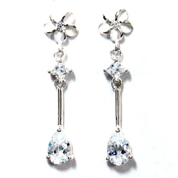 プルメリア(花) クリアストーン・3ポイント装飾 スレンダーフレーム レディース ハワイアンジュエリー シルバー925 ピアス