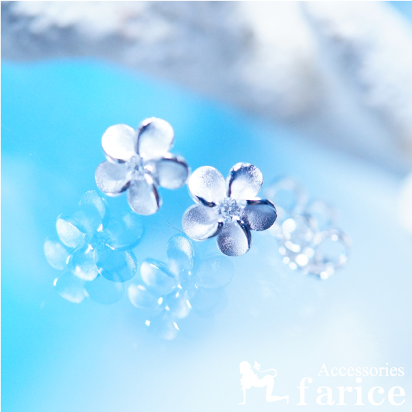 一輪プルメリア ブルートパーズカラーストーン装飾 花びらライン光沢 ハワイアンジュエリー シルバー925 ピアス【花/6mm幅】