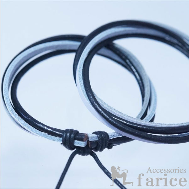 ※本体を両手で引っ張るとブレス幅が広がります。両方の紐を外側に引くとブレスが閉じます。長さ調節可能な結び方のため決して紐をほどかないで下さいね。 こちらの商品は1個売りとなっています。 ★商品のサイズ★ フリーサイズ 幅約16mm 重さ4.2g ★素材★ レザー ★商品のコメント★ 清潔感のあるホワイトレザーにクールなイメージを放つブラックストラップを合わせたツートーンカラー4連ブレスです。人気定番ともいえるホワイト&ブラックのツートーンはもちろん注目度も抜群です。ただ着けているだけで十分な存在感を発揮して周囲の視線を集めそうですね。気軽に着けれて簡単オシャレができるうえ、しかもお手頃価格と3拍子揃ったレザーブレスレットですので、ひとつもっているだけでとっても重宝しますよ♪もちろん他のブレスと重ね着けすればさらにオシャレ度アップ!