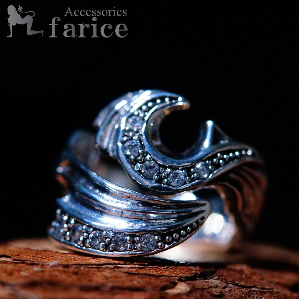 ★商品のサイズ★ 縦約21mm 横約23mm 高さ約22mm 重さ約8g ★素材★ シルバー925 部分燻し仕上げ ホワイトキュービックジルコニア ★商品のコメント★ ループ状に巻きつく装飾をブッタ切ったような荒々しいデザインでハードな存在感は抜群です。鋭角な切り口を持つフォルムは、刃物の先端にも見えるイカついデザインながらも、ループを描く曲線のシルエットがとても美しく際立っていますね。ループに沿って彫られた凹凸のラインも十分なアクセントとなり一層のハード感を漂わせています。上下のエッジラインにはホワイトキュービックジルコニアがラインストーンで埋め込まれており、ハード一辺倒ではなく煌びやかなラグジュアリー感も持たせています。石を埋め込んだ土台部分に燻しのブラックカラーを施したことで、カラーコントラストを付けると同時によりハード感のある仕上がりとなっています。