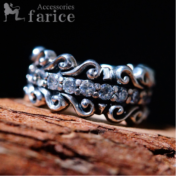 アラベスク 透かし彫り クリアジルコニア ライン装飾 シルバー925 リング
