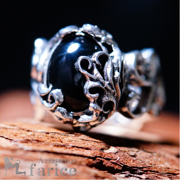 オニキス 天然石 アラベスク透かし彫り シルバー925 リング