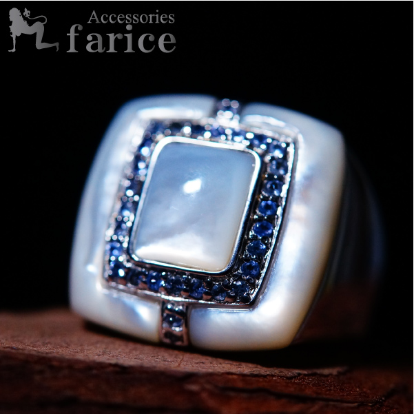 ホワイトシェル蝶貝&キュビックジルコニアラインストーンシルバーリング