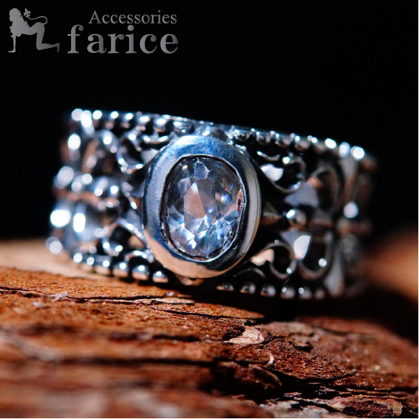 クリアジルコニア 百合の花の紋章 透かし彫り スタッド シルバー925 リング