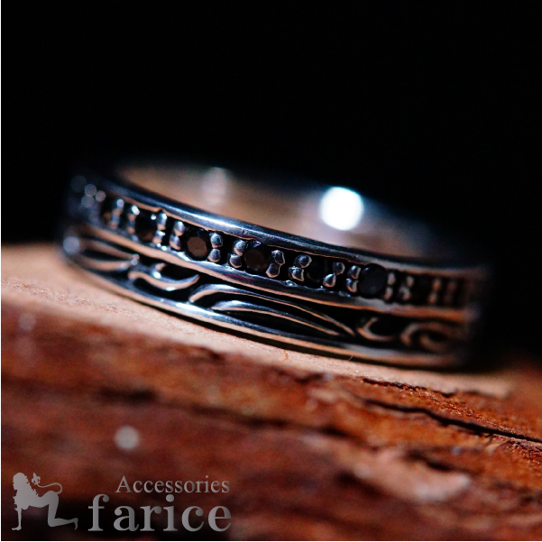 アラベスク ブラックジルコニア 2ライン シルバー925 リング