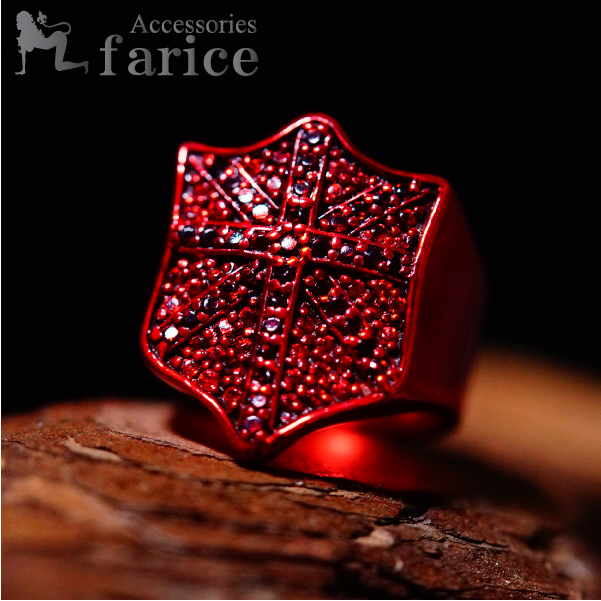 メタルレッドカラー シールド 盾 ジルコニア パヴェ装飾 シルバー925 リング【21号】
