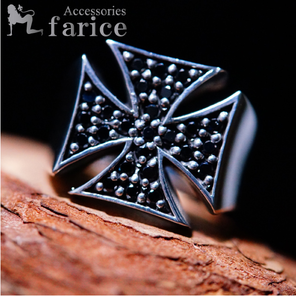 クロス 鉄十字紋章 ブラックジルコニア シルバー925 リング