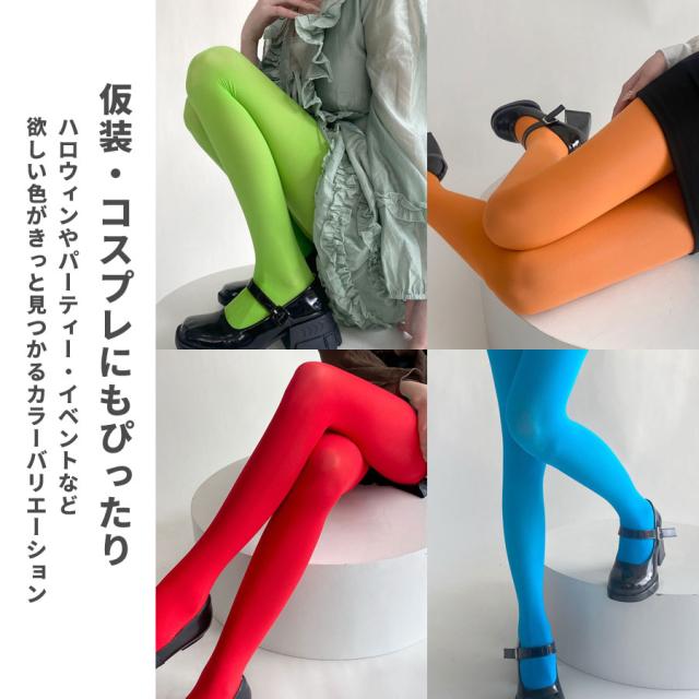 【カラータイツ カラーストッキング 100デニール ストッキング タイツ カラフル 無地 レディース コスプレ 仮装 抗菌加工 防臭 ストレッチ 伸びる 発色きれい マチ付き ハロウィン 衣装 発表会】