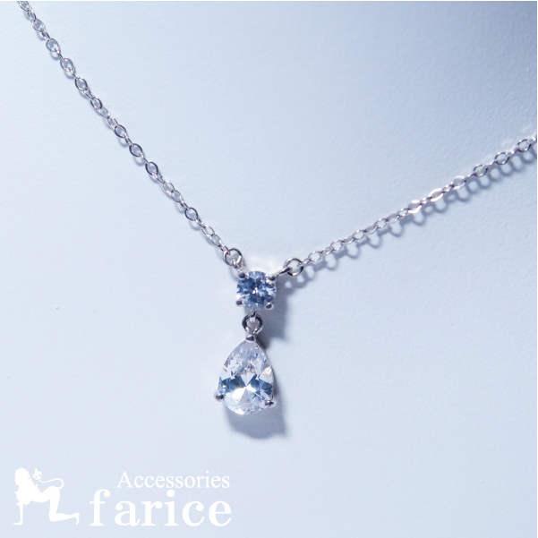クリアジルコニア 2パターンカット 雫型 ジュエリー シルバー925 ペンダント ネックレス