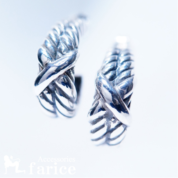★商品のサイズ★ 縦約21mm 横約10mm 重さ約5.8g ★素材★シルバー925★商品のコメント★(ピアスは左右のセット販売になります) 半円型のボデイに縄目状にカットされた模様がとても個性的でボディ中心のクロスした銀の飾りの光沢感が綺麗に輝きデザインを上手くまとめるポイントになっています。