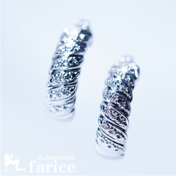 シャイン銀玉ラインストーン ハーフムーンスパイラルウェーブピアス