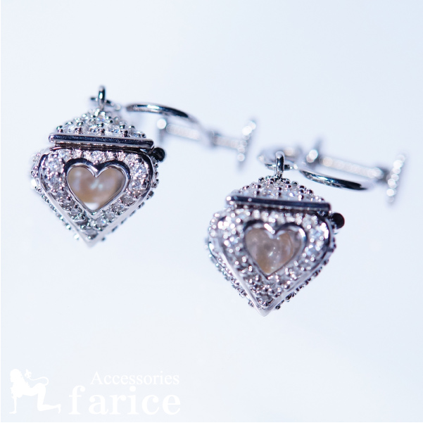 ホワイトパール(真珠)入り クリアストーンパヴェ装飾 蓋が開くハート透かしボックス型 レディース シルバー925 イヤリング