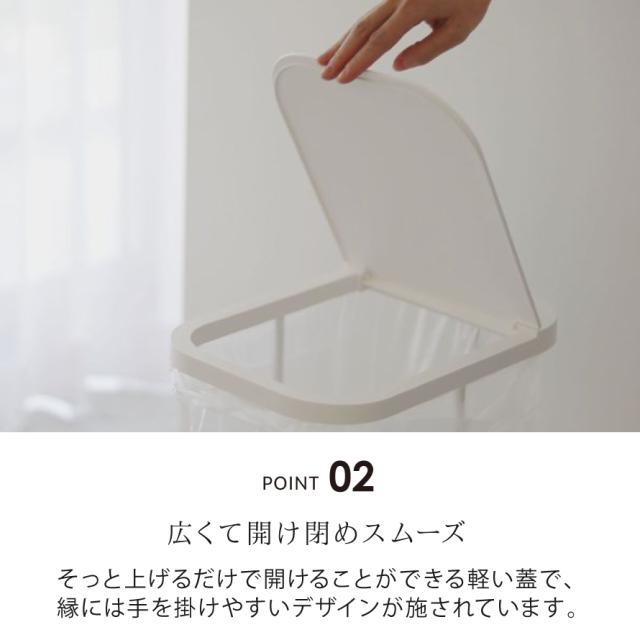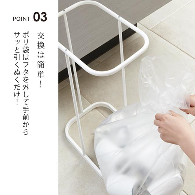 機能的でスタイリッシュなデザインの簡易ゴミ箱。袋を交換するときは蓋を外して前からサッと取り出せる構造です。