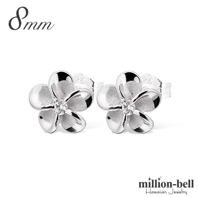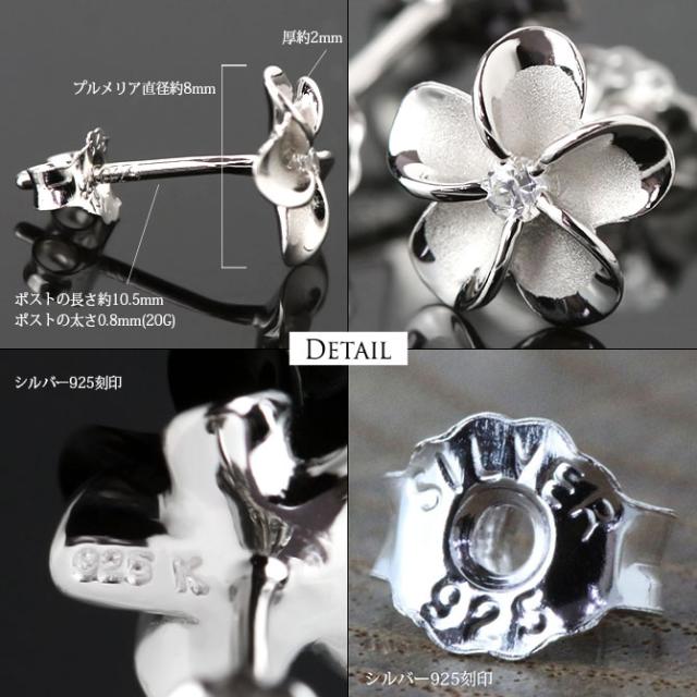 ハワイアンジュエリー ピアス ハワイアン ピアス プルメリアピアス 花 8mm ジルコニア シルバー925 ロジウムコーティング キャッチ メール便 20G ゲージ 彼女 妻 女性 レディース 誕生日 プレゼント ホワイトデー 卒業式 入学式 【品番:SE53218】