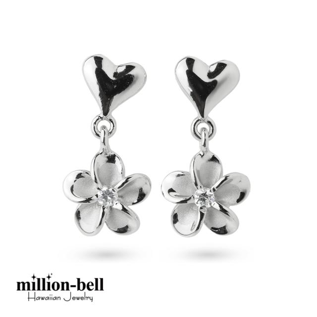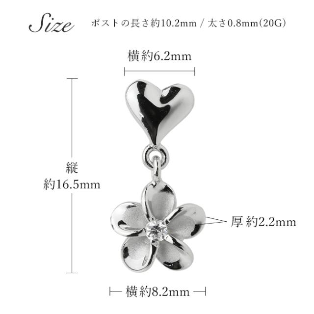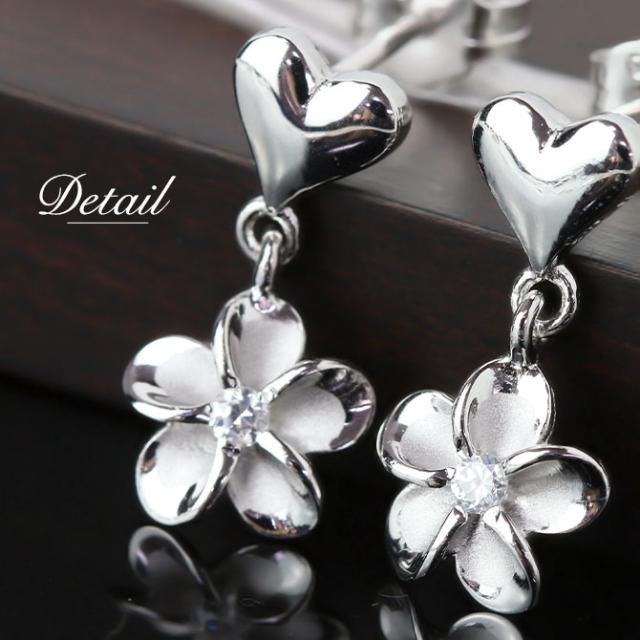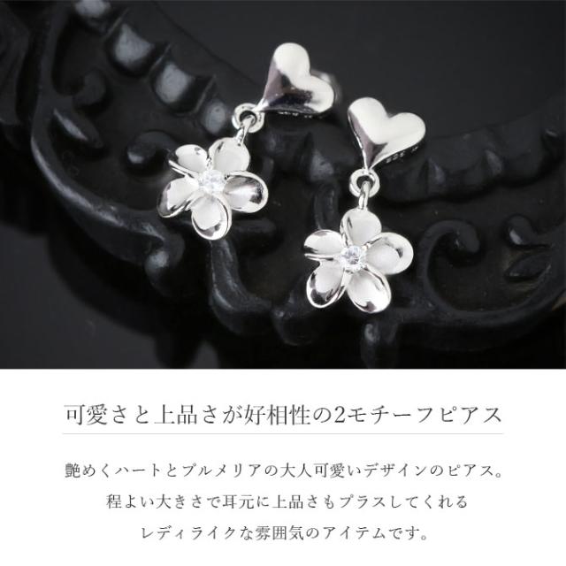 ハワイアンジュエリー プルメリア&ハート ピアス ジルコニア シルバー925 ロジウムコーティング キャッチ メール便 20G ゲージ SE18201 彼女 妻 女性 レディース 誕生日 プレゼント ホワイトデー 卒業式 入学式 【品番:SE56048】