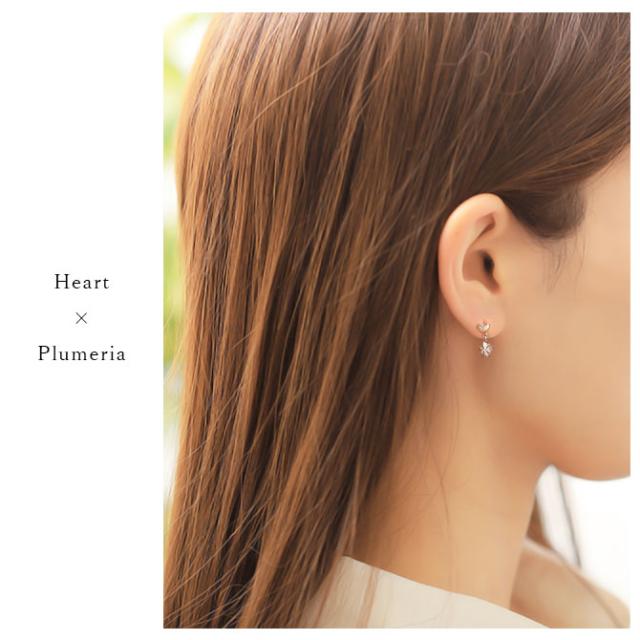 キュートなハートと揺れるプルメリアのコラボピアスで華やかに♪