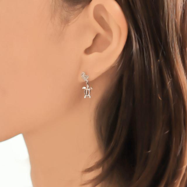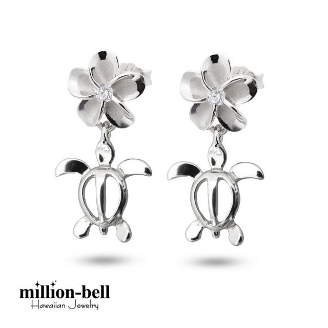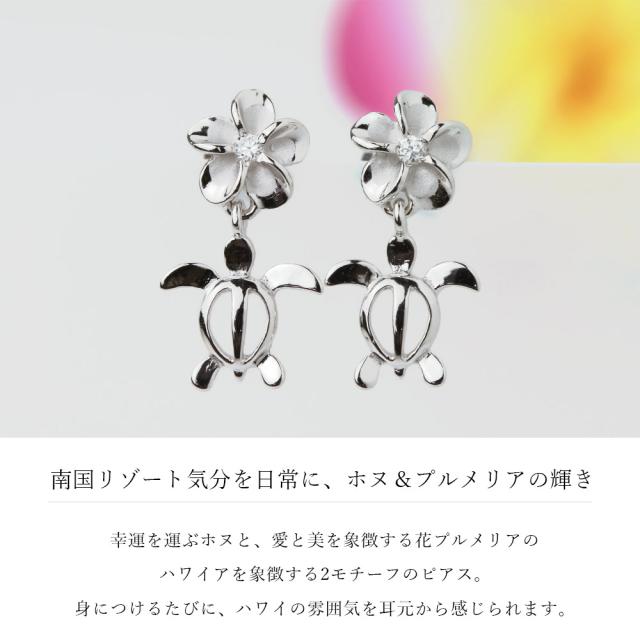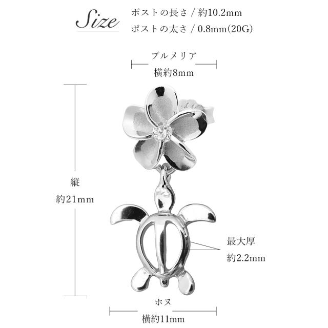 ハワイアンジュエリー ホヌ プルメリア ピアス ジルコニア シルバー925 ロジウムコーティング キャッチ メール便 20G ゲージ 彼女 妻 女性 レディース 誕生日 プレゼント 入学式 就職 お祝い 新生活 【品番:SE56058】