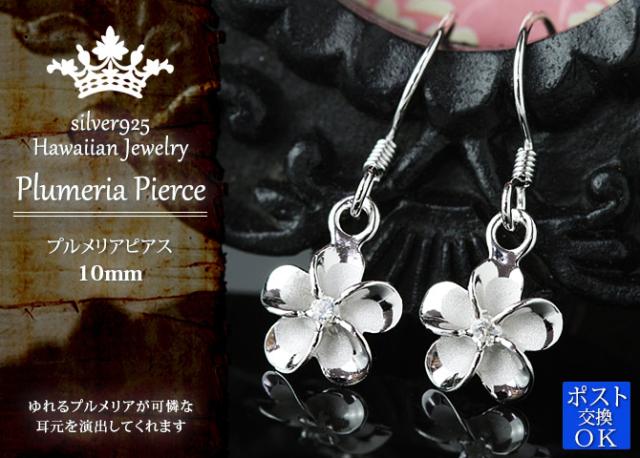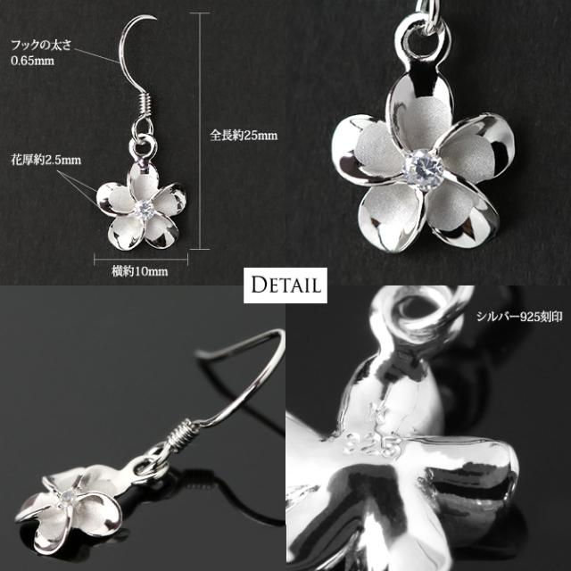 ハワイアンジュエリー ピアス プルメリアピアス 花 ジルコニア シルバー925 ロジウムコーティング フックピアス 揺れる ぶら下がり 金属アレルギー対応 樹脂フック イヤリングにパーツ交換可能 お正月 成人祝い 【品番:SE53828】