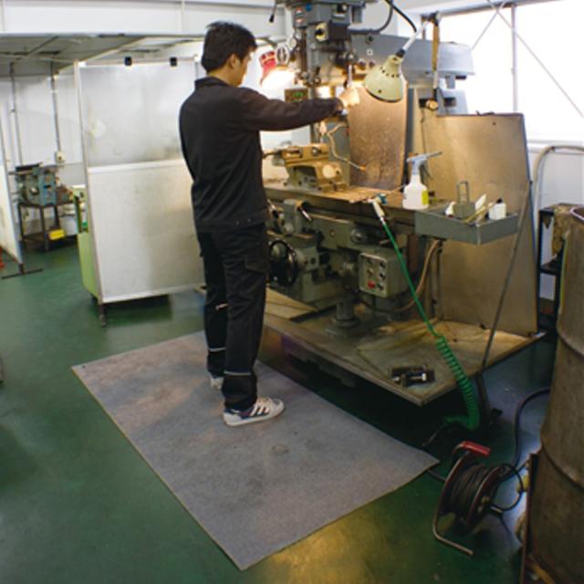 吸油・吸水性に優れたマットです。工場の通路などに敷けば、一般のマットではなかなか落とせない安全靴や作業靴などの靴底の油汚れをきれいに落とし、油汚れが拡がるのを防ぐことができます。