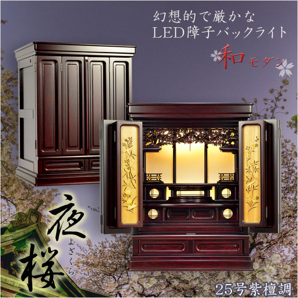 現代的な伝統型仏壇【優美に和むモダン仏壇:夜桜(よざくら) 25号紫檀調】家財便発送無料