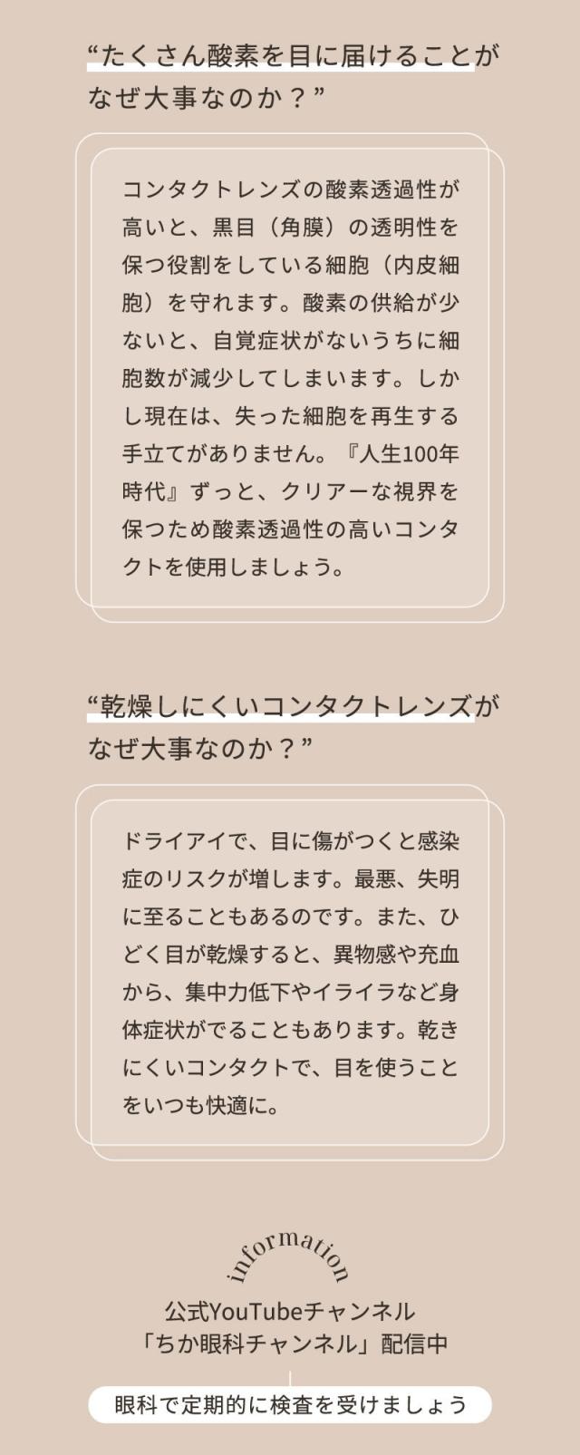 ・コンタクトレンズは「高度管理医療機器」です。必ず眼科医の検査、指導に従いご自身に適したレンズをお選び下さい。