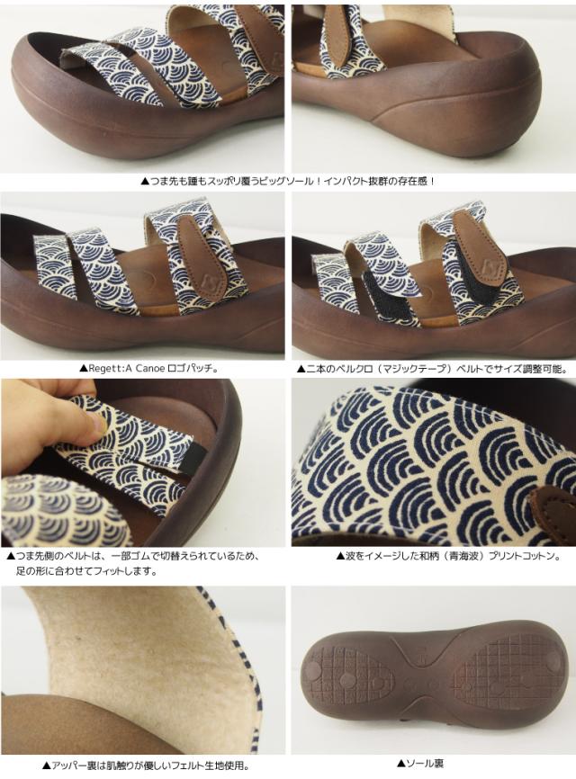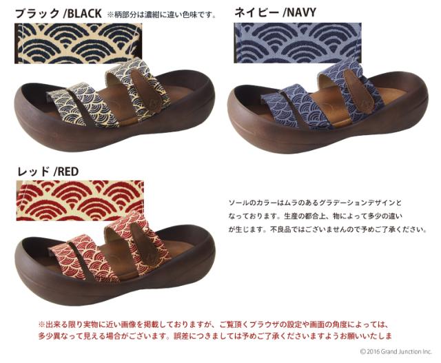 縁起の良い柄として知られる青海波(波模様)を採用し、馴染みのある和柄に、 モダンなカヌーのデザインが見事にマッチしています。 カジュアルスタイルにはもちろんのこと、 浴衣などの和装スタイルに下駄代わりに履くのもオススメ!個性的なJAPANESE FASHIONが完成します!