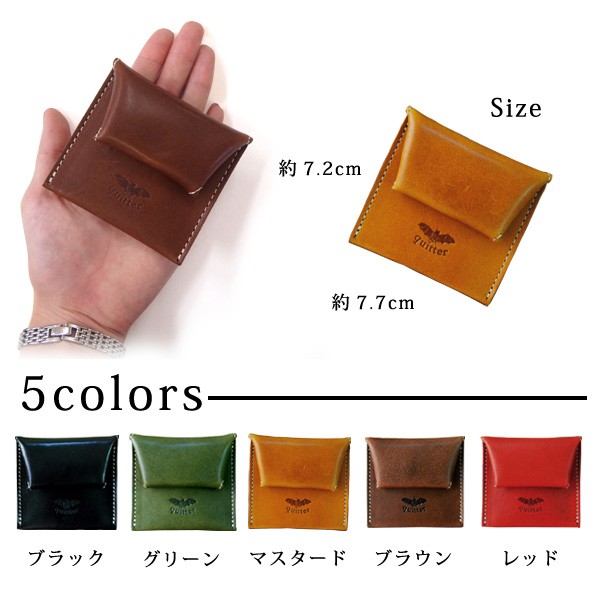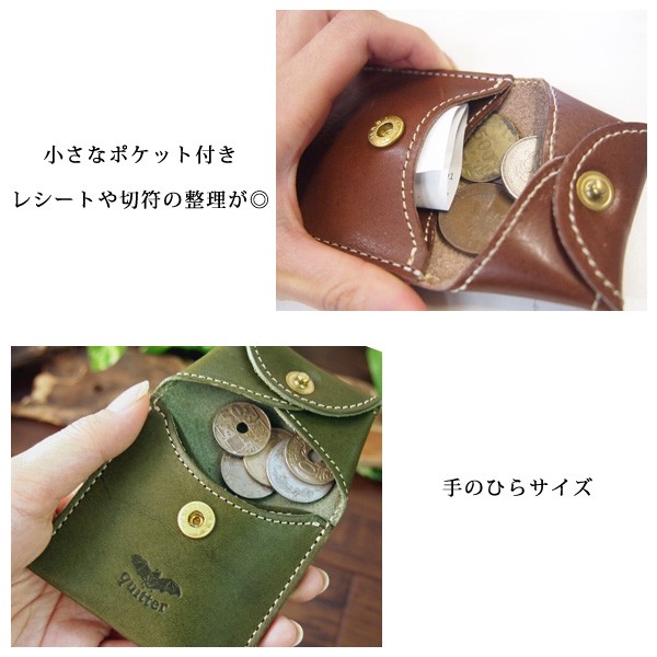 | ●使いやすさにこだわった本革レザーコインケース! コインが見やすく、フタの部分が飛び出すコインの受けになり、抜群の使いやすさになっています。 手の平にスッポリ収まるサイズになっており、見た目以上に大活躍いたします。 小銭入れの他にポケットが1つ付いているため、無くしやすい切符や回数券が収納できます。 ●こちらの商品はジーンズレザーを使用しております。 ジーンズレザーは、使えば使うほどにユーザーになじんでくるので、 バッグや小物などに最適なヌメ革となっております。 ●『quitterのレザー商品はこだわりの栃木レザー!』 日本国内での革作りにこだわり、国内最高峰の技術を持つとされるタンナー (皮革素材の製造メーカー)それが栃木レザーです。 その栃木レザーさんの革の上質さは非常に有名で多くのメディアに紹介されたり、 有名ブランドの製品に使用されることもあるなど、 今やその名はひとつのブランドとしての地位を築いています。 栃木レザーのヌメ革は南米産のミモザの樹皮から抽出された天然素材だけで 一ヶ月以上じっくり時間をかけてなめし上げています。 化学薬品を一切使用しない為、手間と時間を十分にかけ、 こだわりの味わい深い風合いとナチュラルな経年変化が楽しみいただけます。 ■ブランド名:quitter(クイッター) ■サイズ:(約)H7.2cm×W7.7cm、[見開き状態]H11.5cm ■生産地:日本製 ■素材:日本製 本牛革 ■パッケージ:個別袋入り ■カラー:ブラック、ブラウン、マスタード、レッド、グリーン |